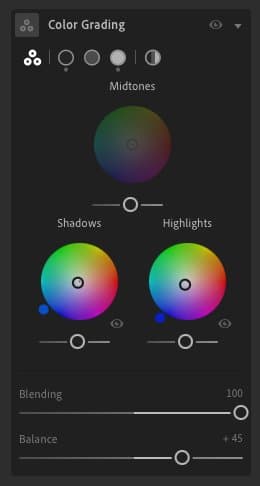 To achieve that signature "Cold Contrast" look, I move away from a neutral gray using the Color Grading panel. I push a subtle teal/blue tint into both the Shadows and Highlights, while shifting the Balance to +45. This creates a cinematic, almost icy mood that mimics the feel of early morning light in an urban landscape.